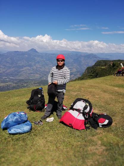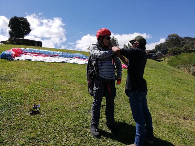 La aventura empezó realmente en el 2017, pero por un accidente y un duro proceso de enfermedad, tuve que posponerlo hasta febrero de 2018 cuando empecé a hacer ejercicios con mi propia vela. Luego de varios meses de prácticas en el “Campo Escuela” se llegó finalmente el día del primer “vuelo de alto”, como se le denomina al primer vuelo que haces en parapente.