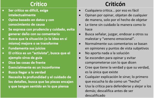 Esta fue una pregunta y un debate reciente: ¿Cuál es la diferencia entre ser crítico y ser criticón? Prometí que iba a escribir en detalle sobre el asunto para dejar saldada la duda. La diferencia es clara. Veamos…