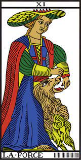 Piensa en tus momentos más difíciles, en grandes obstáculos que hayas superado: ¿Cómo lo hiciste?, ¿cómo superaste todo esto?, ¿qué te enseñó esta circunstancia?, ¿qué te mostró de ti? Este arcano tiene una simbología característica: la dama mete sus manos en la boca del león, como indicando que no teme a esas fuerzas instintivas y que está lista para encararlas. Este también es un motivo alquímico en la medida que todas esas fuerzas que pueden desviarnos las transformamos en “oro interior”.